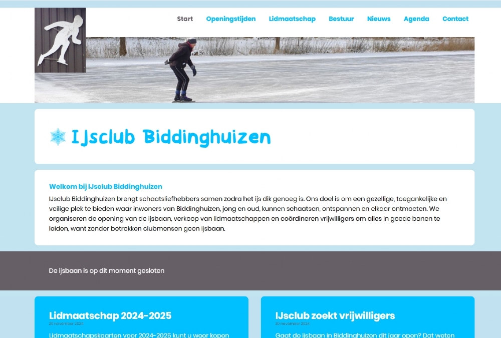 De website, nog vertrouwd te vinden via www.ijsclub-biddinghuizen.nl, is voorzien van een moderner uiterlijk, waardoor we informatie overzichtelijker kunnen presenteren.