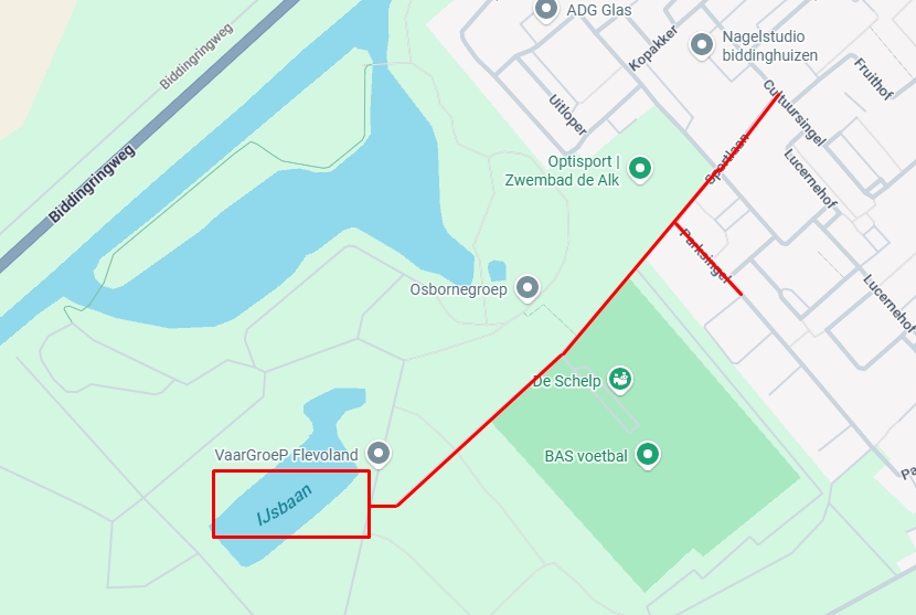 Locatie van de ijsbaan aan het einde van de Sportlaan